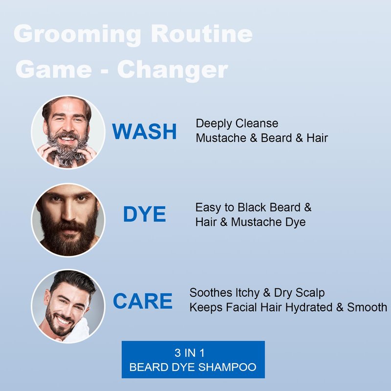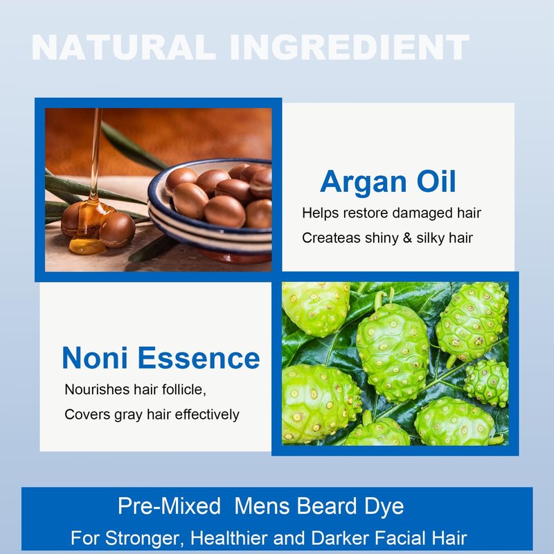 - 【Natural Ingredients】 This beard dye for men black is rich in argan oil and noni extract, nourish your facial hair and helps to strengthen hair follicle,for a healthier-looking hair. No chemical oxidation, our grey reducing shampoo mens & beard wash formula keeps your facial hair clean and safe from damage while reducing the risk of skin irritation. The darker and thicker beard makes you exude strength and masculinity in any situation.