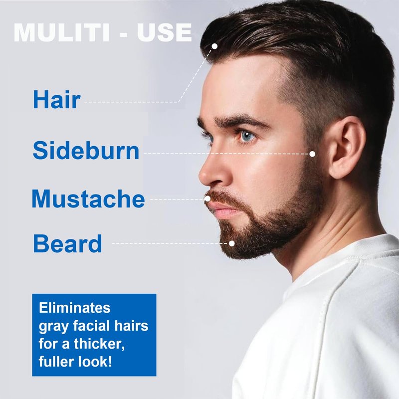 - 【A Little Goes A Long Way】 6.76 Fl Oz hair & beard color for men is available for around 10 applications at home and natural black color can last up to 3-4 weeks after dyeing, or until your gray hair grows back. Works well on any type of facial hair - beards, mustaches, soul patches, goatees. Great for touch up. Great value for your money. Dye your beard at home without expensive barber costs. Choose professional - quality beard coloring for men. You’ll get the most natural - looking gray coverage in a masculine and long-lasting true black shade.