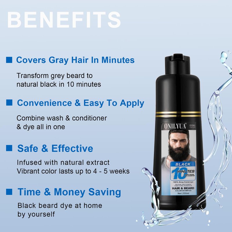 - 【Look Younger In Seconds with Simple Beard shampoo】 No staining. No mess. No drip. This beard coloring makes getting rid of gray facial hair easy. Simply press and foam the beard shampoo, apply it into clean, DRY beard from the roots to the ends and wait 10 minutes, rinse the product out, shampoo, and you're done. If you want a better coloring effect, try to keep the beard dye for 25 minutes. The easiest, fastest, most natural-looking beard color solution available.