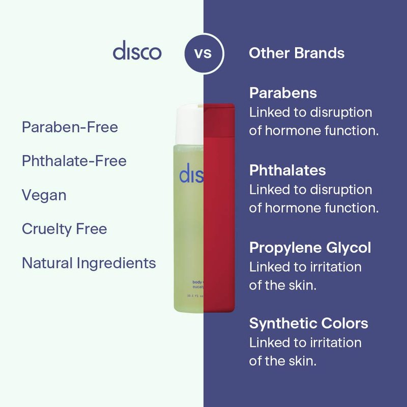 Men's Body Wash by Disco - All-Natural, Soothing and Hydrating - Paraben Free, Vegan - Eucalyptus Scent - 10.1 Fl Ounces