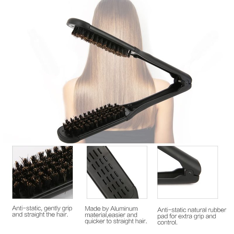 - Double Sided Hair Straightener Brush: The boar bristle clamp hair brush is featured with double side style, with clamp design, easy for you to straighten your hair, can be quickly shaped and not easily hurt the scalp, helps to repair dry hair and adds volume.Make your hair smooth and straight