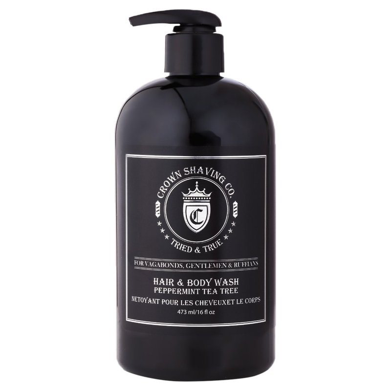 Men's Hair & Body Wash16oz (473ml) - Crown Shaving Co - Peppermint and Tea Tree Oil Soothing and Hydrating Mens Hair and Body Wash