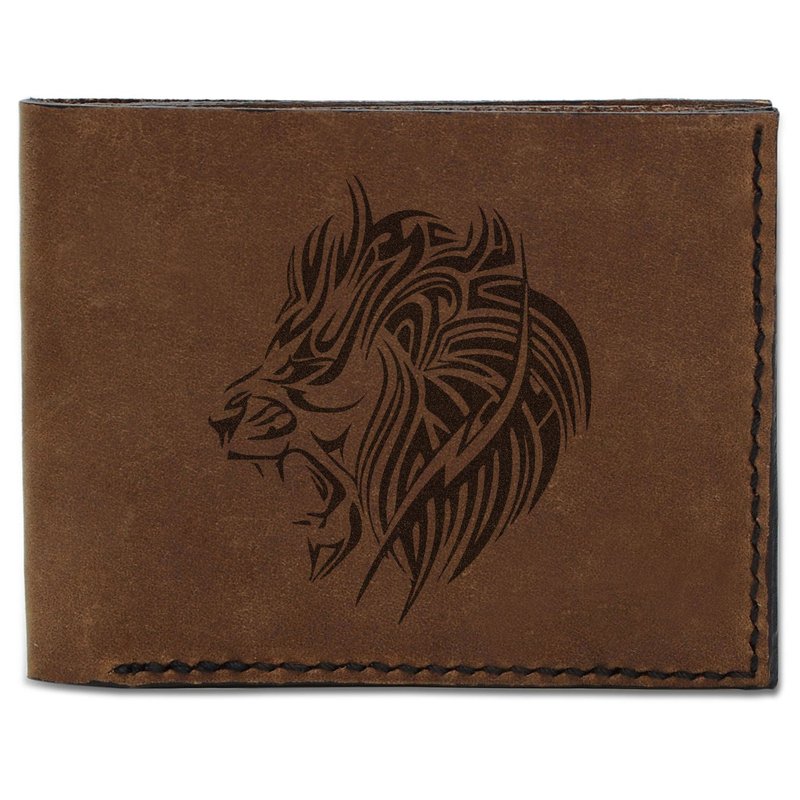 Men's Lion Tatoo Style -21 Handmade Genuine Pull-up Leather Wallet MHLT_03