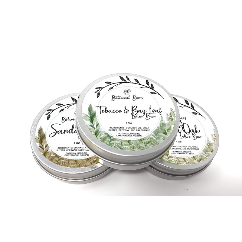 Men's Lotion Bar Set - 3 Lotion Bars 1oz Each - Sandalwood Lotion, Vanilla Oak Lotion, and Tobacco and Bay Leaf Lotion