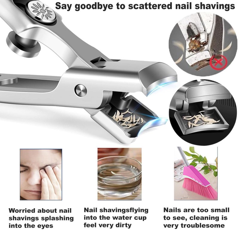 - [Clean and Convenient Design] Say goodbye to the messy nail trimming course. This is the 2024 new German men's nail clipper with innovative splash proof design, built-in nail catcher, which can automatically collect nail shavings, keeping your space clean and no longer messy