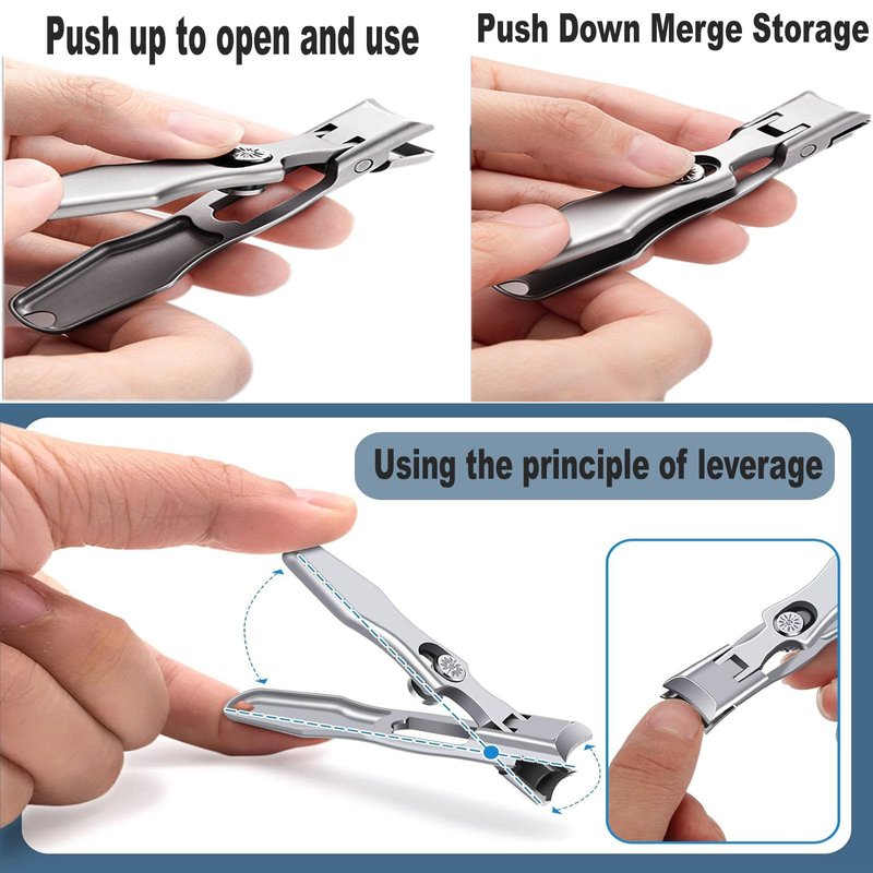 - [Effortless and Portable] Enjoy worry free nail beauty with a wide jaw opening and a long power arm using a nail clipper, easily achieving clean and neat cutting. Even elderly people can easily cut off thick nails, and its self-locking design ensures easy opening and closing, making it easy to carry wherever you go