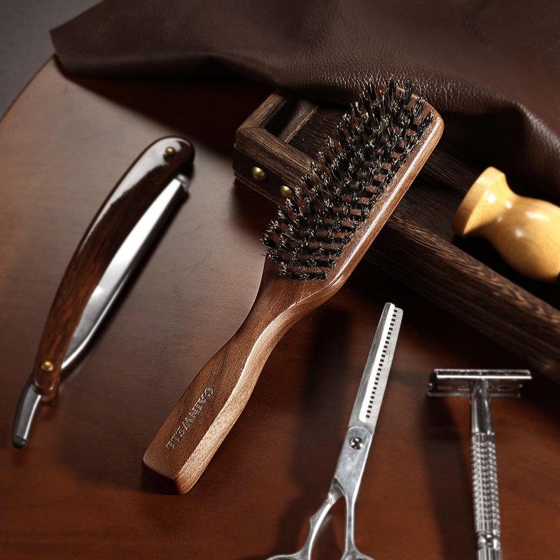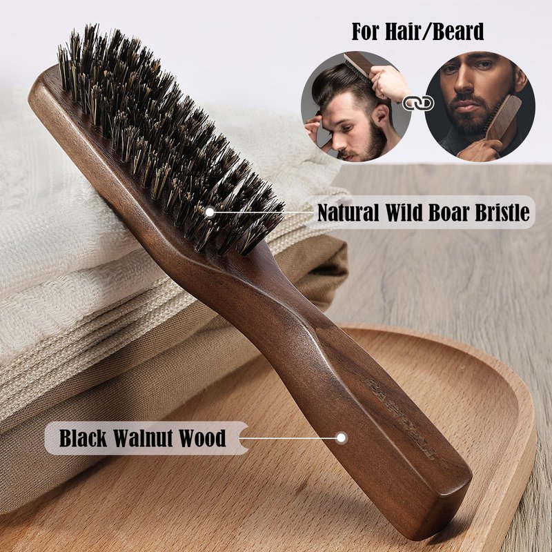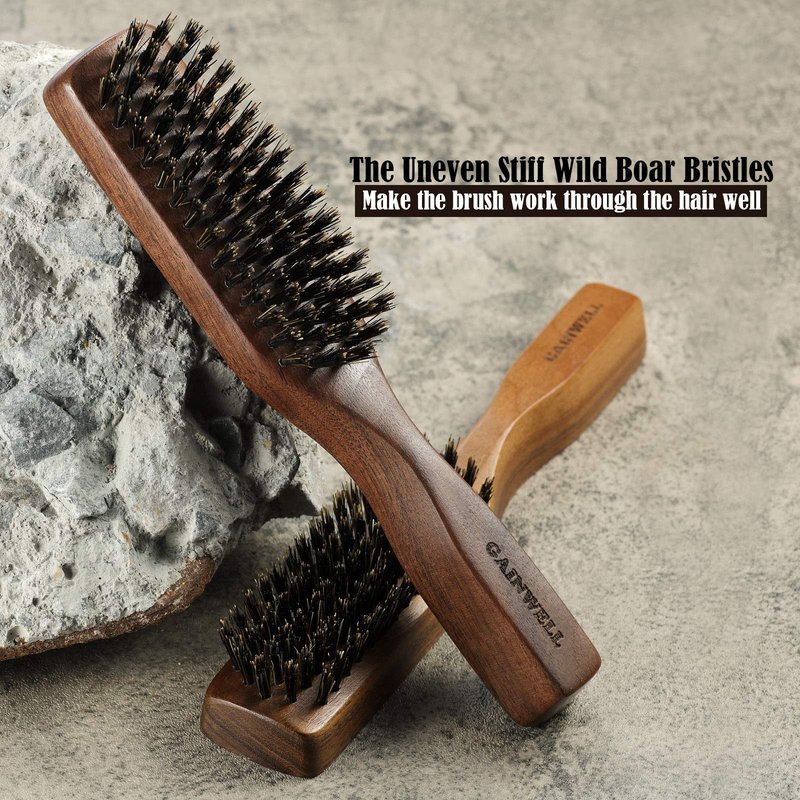 - Wild Boar Bristles & Black Walnut - This mens boar bristle hair brush is made of high-quality boar bristles. Medium size mens hair and beard brush with a long black walnut handle. Provides a better grip. GAINWELL Wild boar bristle hair brush can be used in dry and wet environments