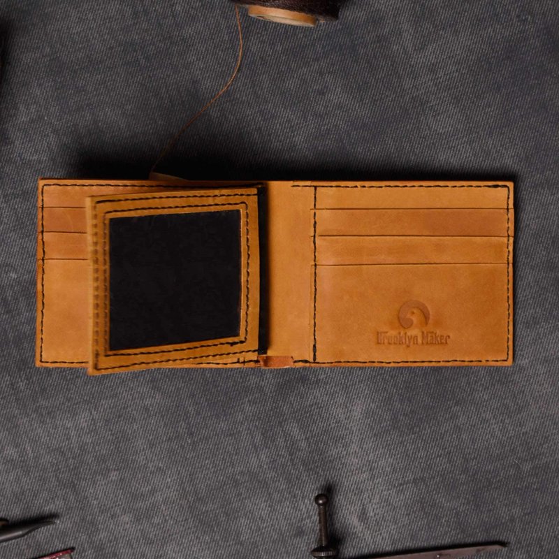 Men's Wolf Abstract -5 Handmade Natural Genuine Leather Trifold Wallet MHLT_05