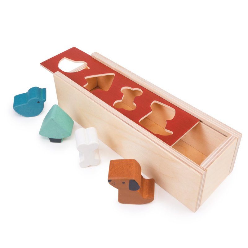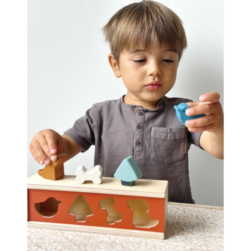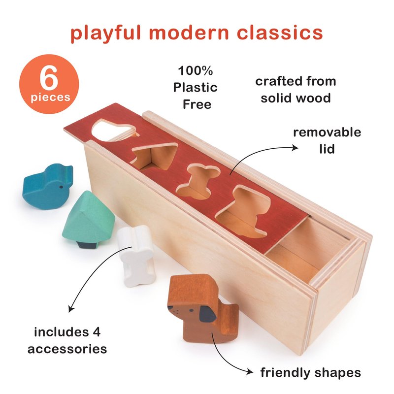 - PAW-SOME PLAYTIME - Get ready for some ‘paw-some’ playtime fun with our wooden shape sorter box. This beautifully crafted toy features a removable lid and 4 fun shapes; a chirpy bird, a towering tree, a playful pup, and a bone for that loyal canine friend. Kids will have a blast fitting the shapes into their matching cut-outs on the lid, and they'll love the satisfying ‘clunk’ as each piece drops into the box. Slide off the lid, retrieve the shapes, and start the fun all over again!