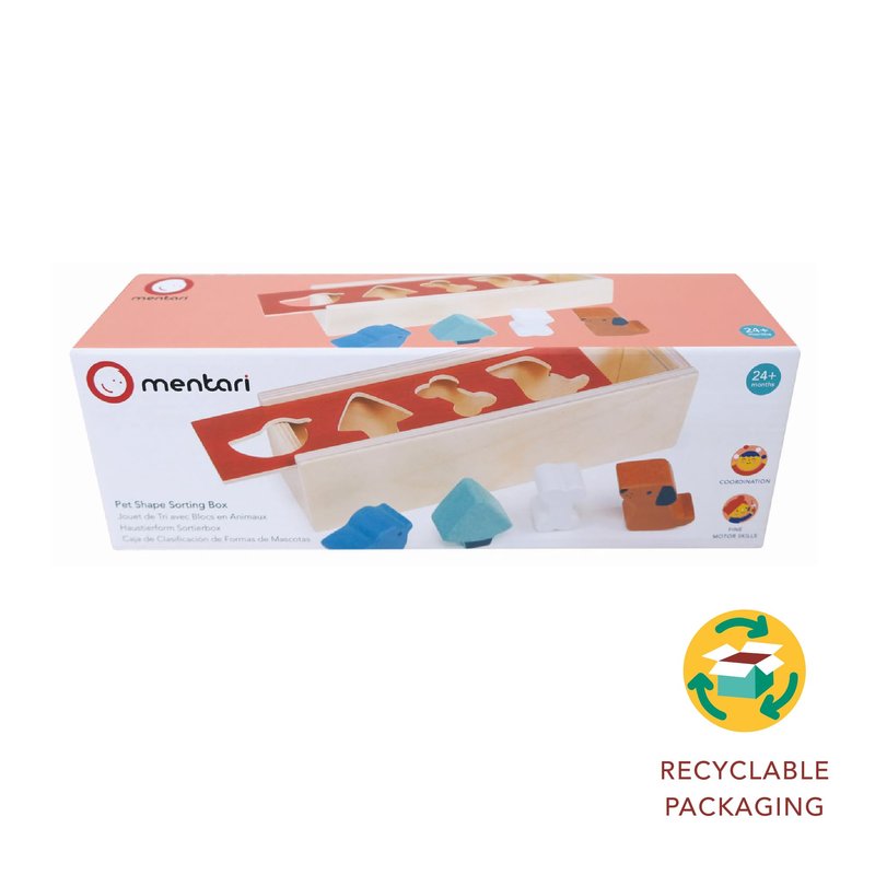 Mentari Toys - Pet Shape Sorting Box - Wooden Shape Sorter Toy for Toddlers - Classic Activity Toy with 4 Shapes and Sliding Lid - Boost Fine Motor Skills - Toddler Educational Toy - Age 2+