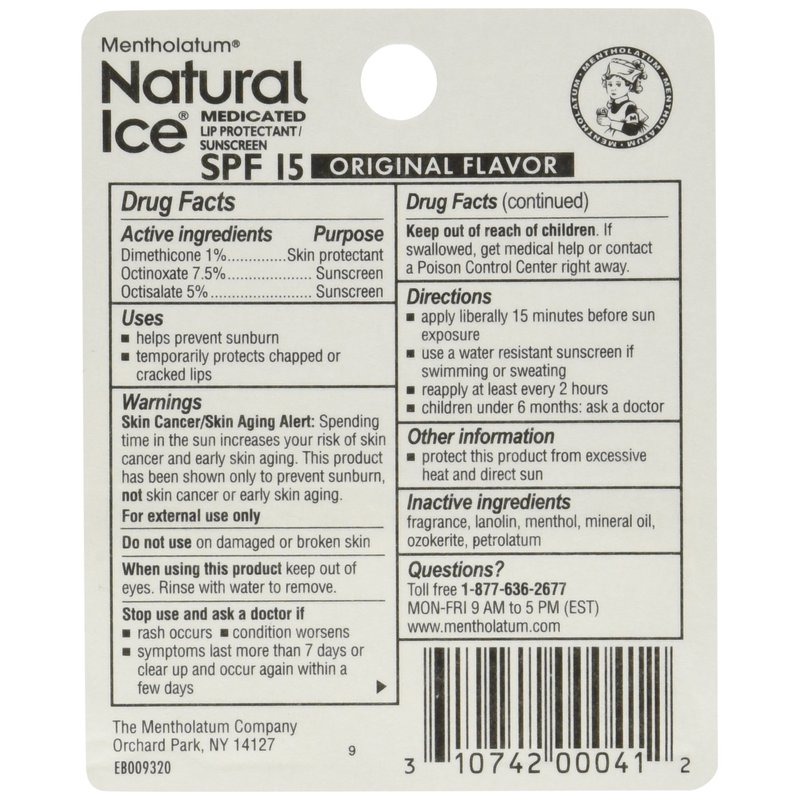 - Natural Ice Lip Balm is cooling, soothing protection naturally.