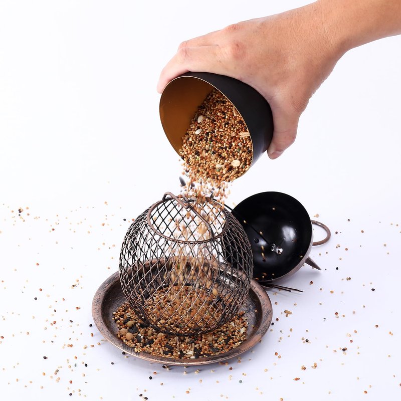 - Durable Bird Feeder: All metal design, sturdy structure is chew proof, help thwart squirrel damage, save your of bird feeding costs. Powder-coated finish help to resist rust, making bird feeder last longer when used outdoors.