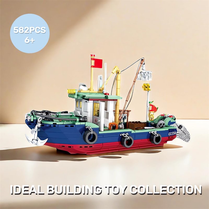 MEOA Fishing Boat Building Blocks Toys 582pcs Marine Theme City Ship Model Building Kits Fishing Ships Building Set for Boys Ideal Gifts for Kids and Adults