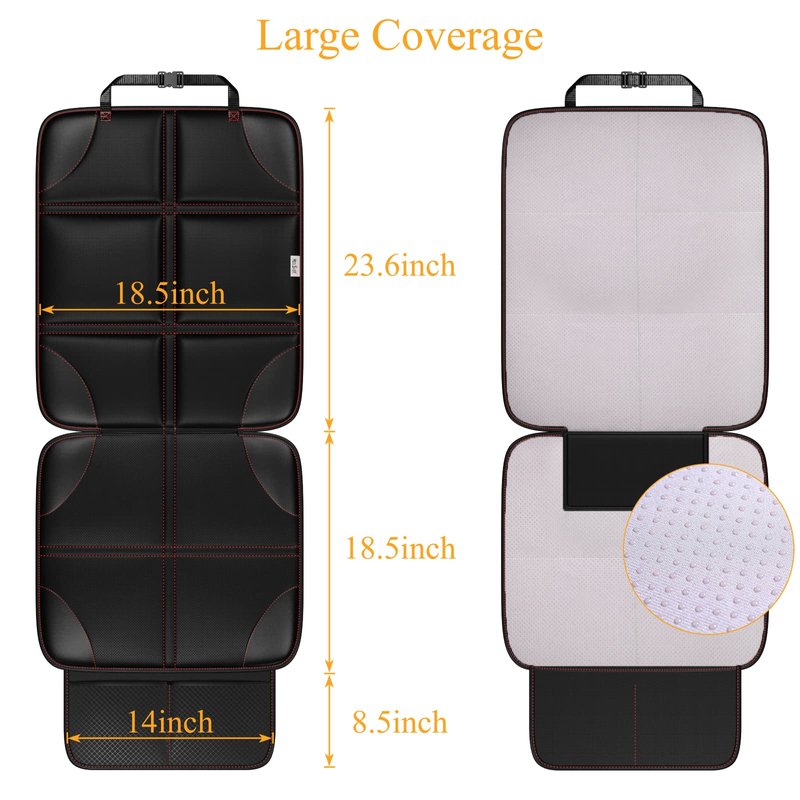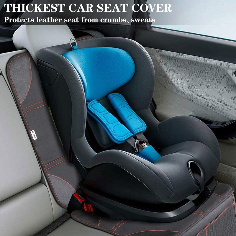 - Car Seat Protector for Child Car Seat- Baby car seat protector extend your car upholstery life, highly resilient fabric protects the seat from creasing and cracking caused by the baby booster car seat. The 2 large pockets in the bottom for storing your child's toys, and treats, books