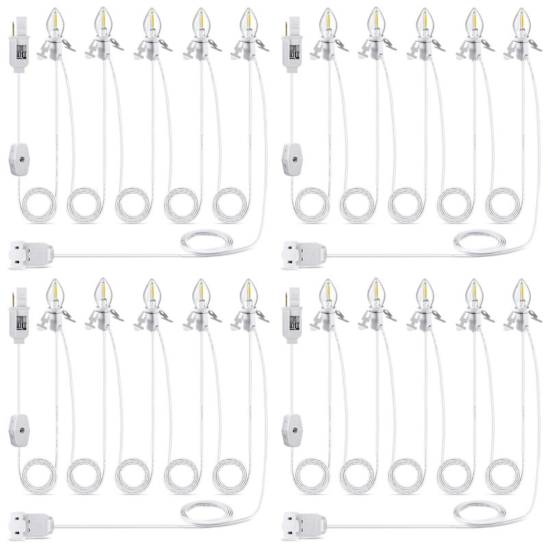 4 Pack white accessory light cord with 5 C7 LED lamps. Nice Halloween Christmas holiday light decoration for brightening your village house crafts.