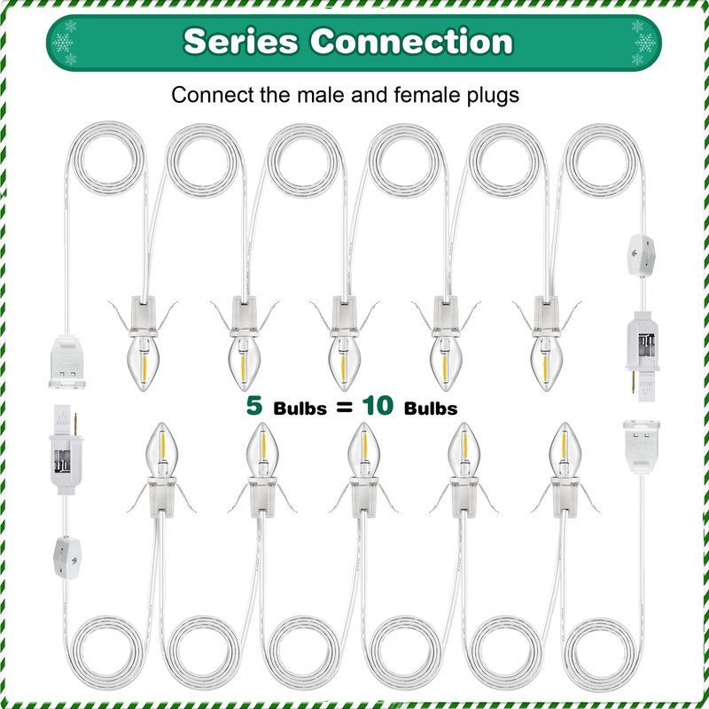 - [Accessory Cord with 5 C7 Lamps]: the 12 feet village light cord has 5 warm white LED light bulbs connected in series, emitting soft and bright lightness; C7 light cord is a good choice for decorating different village houses, craft projects on Christmas holiday