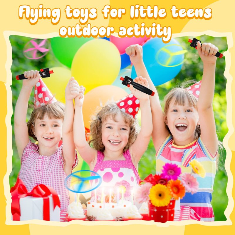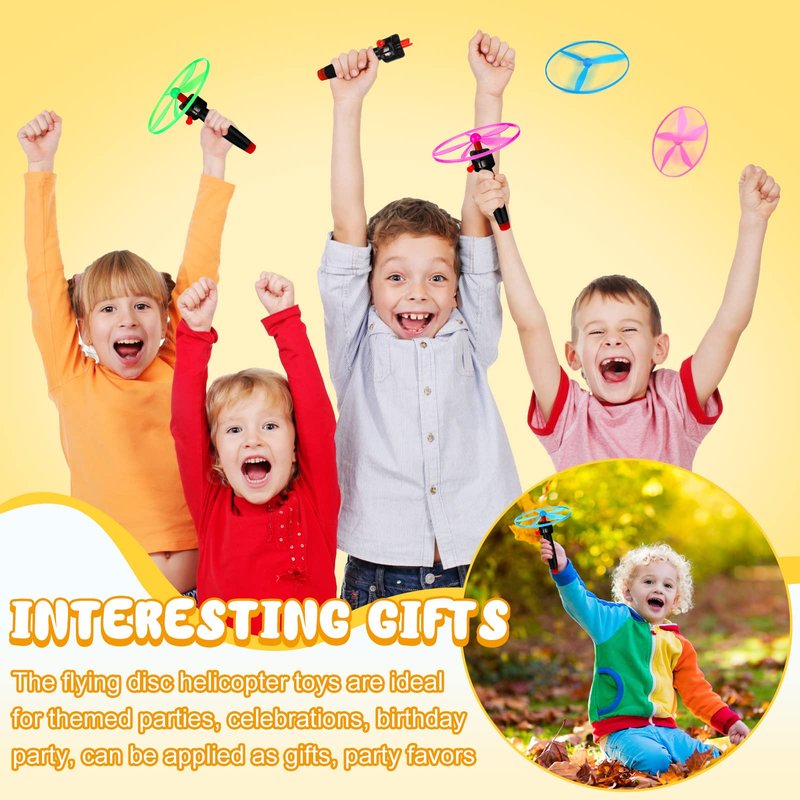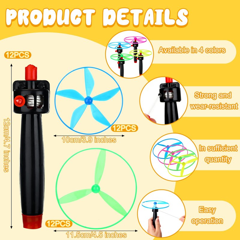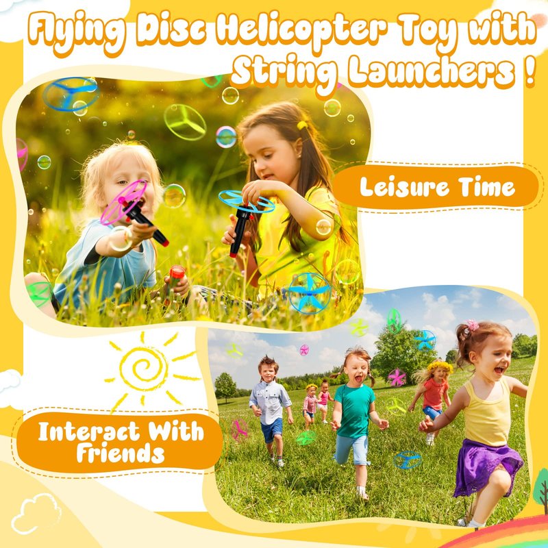 Meooeck Flying Disc Helicopter Toy Disco Flyers Include 12 String Launchers and 24 Flying Saucer Flying Disc Launcher Toy Flying Toys for Outdoor Activity Little Teens Birthday Party Favors(36 Pcs)
