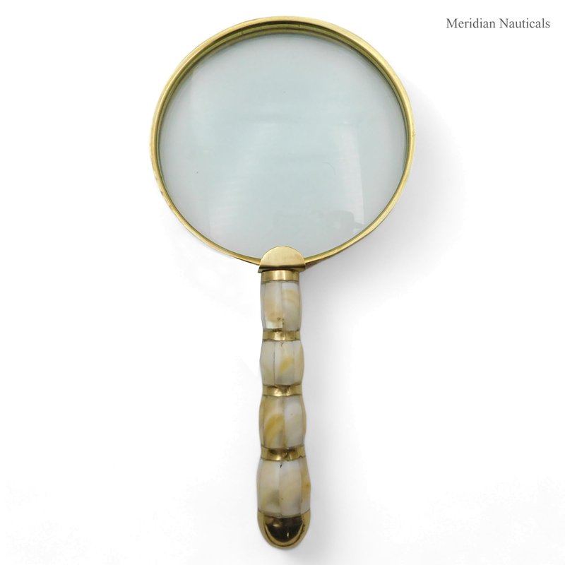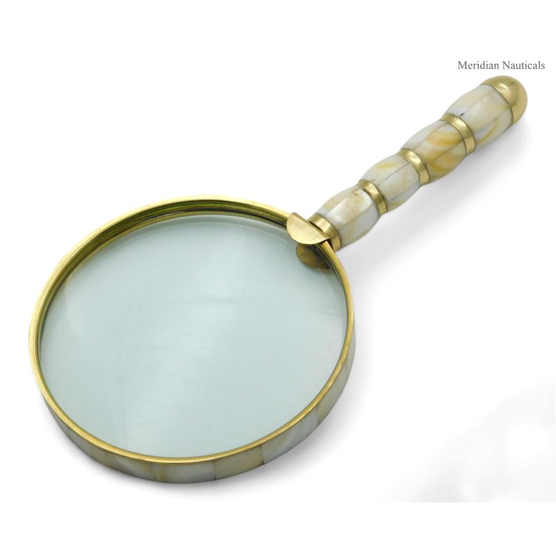 - Meridian Nauticals presents Brand new solid brass & mother of pearl hand held magnifying,