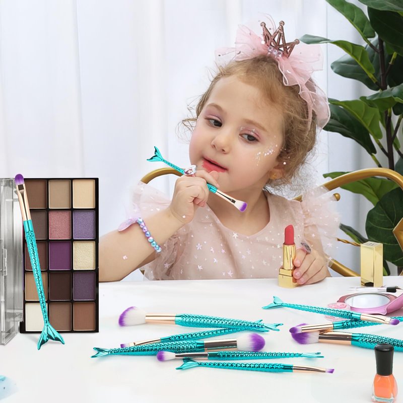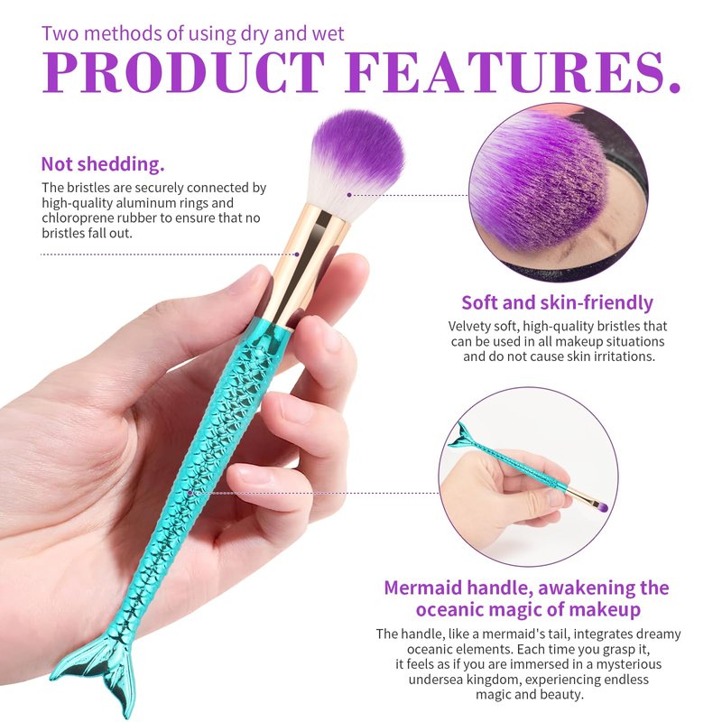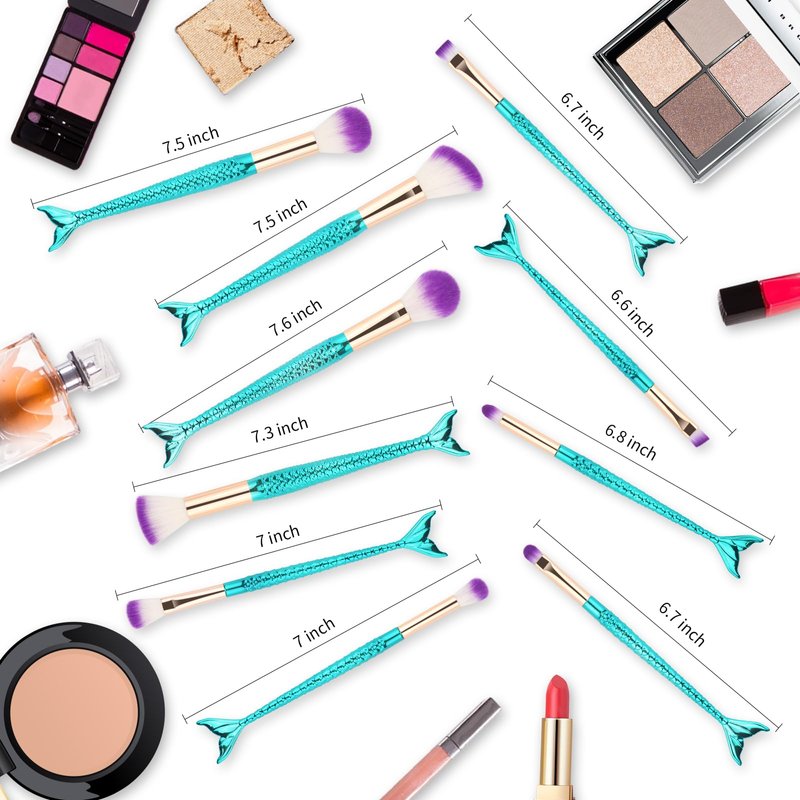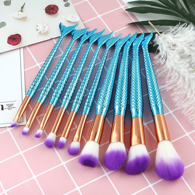 Mermaid Makeup Brushes, 10PCs Professional Premium Makeup Brush Set Foundation Powder Eyeshadows Blending Blush Skin Care Products Brushes (Blue)