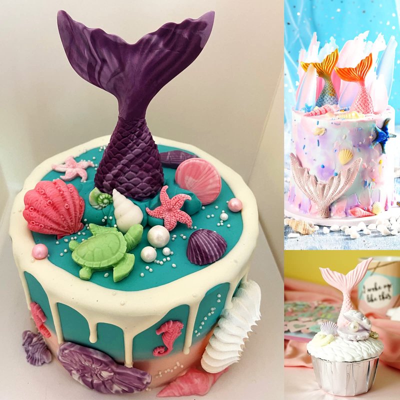 - 🐟[Under the Sea Fondant Molds Set] You will receive 6 pieces mermaid silicone molds.1piece mermaid tail fondant cake mold,1 piece seahorse silicone mold,they are a seahorse father and son,2 pieces seashell molds with different patterns,1piece sea turtle silicone mold,1 piece Seaweed mold .These molds can help you make very beautiful Under The Sea cake decoration,chocolate,candy,cupcake decor, sugar.
