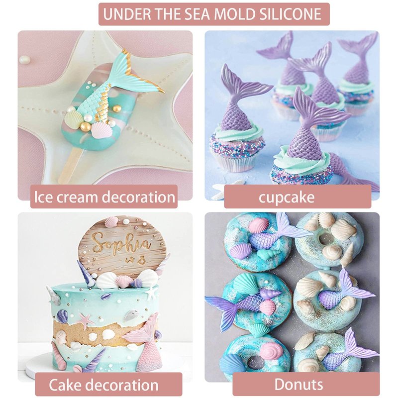 - 🐟[Mermaid Cake Fondant Mold Widely Used] The marine silicone molds are designed with cute romantic pattern,Vivid image.it's a really great ideal for decorate cupcake topper fondant cakes,chocolate,candy Jelly, Muffin,Sugarpaste, Melted Chocolate.Not only for food,it's also a nice molds for children to DIY clay handicrafts,or decorate soap...