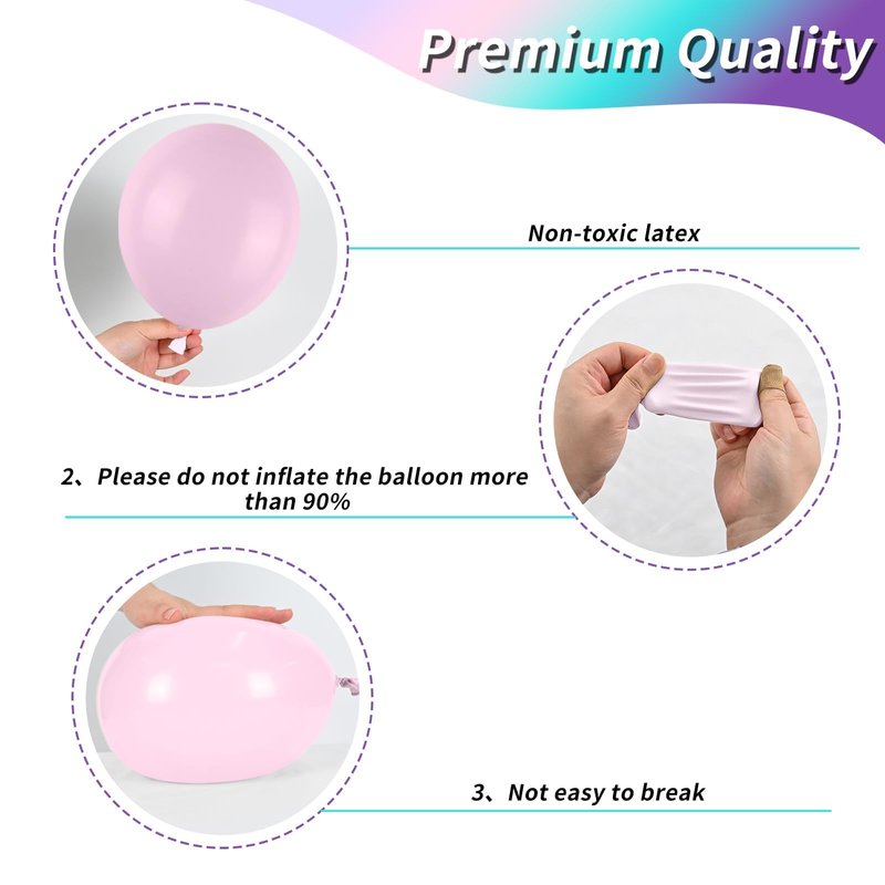 - Premium-Quality Balloons: Crafted from natural, high-grade latex, each balloon undergoes rigorous manual testing to ensure exceptional elasticity and safety. Suitable for both adults and children, these balloons are an ideal party decoration kit, suitable for inflation with air or helium, and recommended for use with balloon pumps. They are non-toxic, guaranteeing a secure and enjoyable celebration.