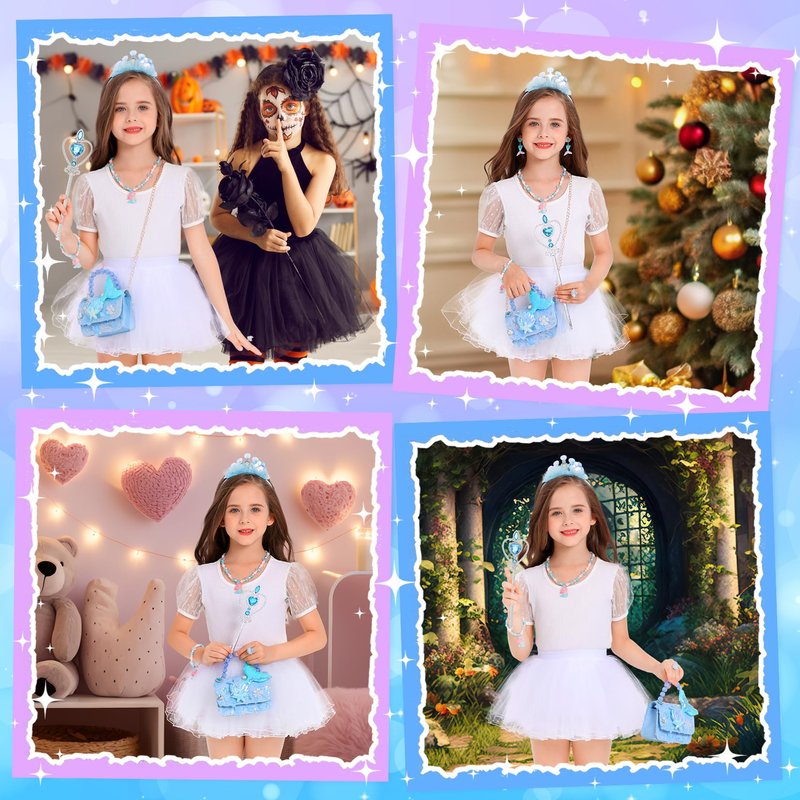 - Mermaid jewelry: Exquisite mermaid crown and princess dress up jewelry accessories, the perfect restoration of the sea princess style, the girls fell in love with a glance, turned into a fairy tale princess.