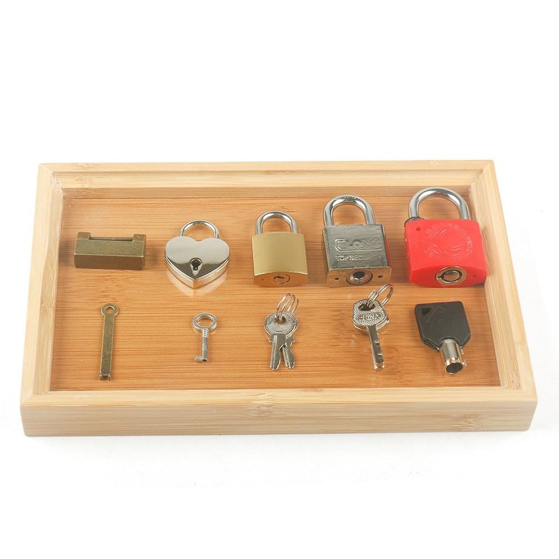 MEROCO Lock and Key with Wood Tray Set Fine Motor Skill Sorting Learning Toys Travel Games for Toddlers 3-5 Years