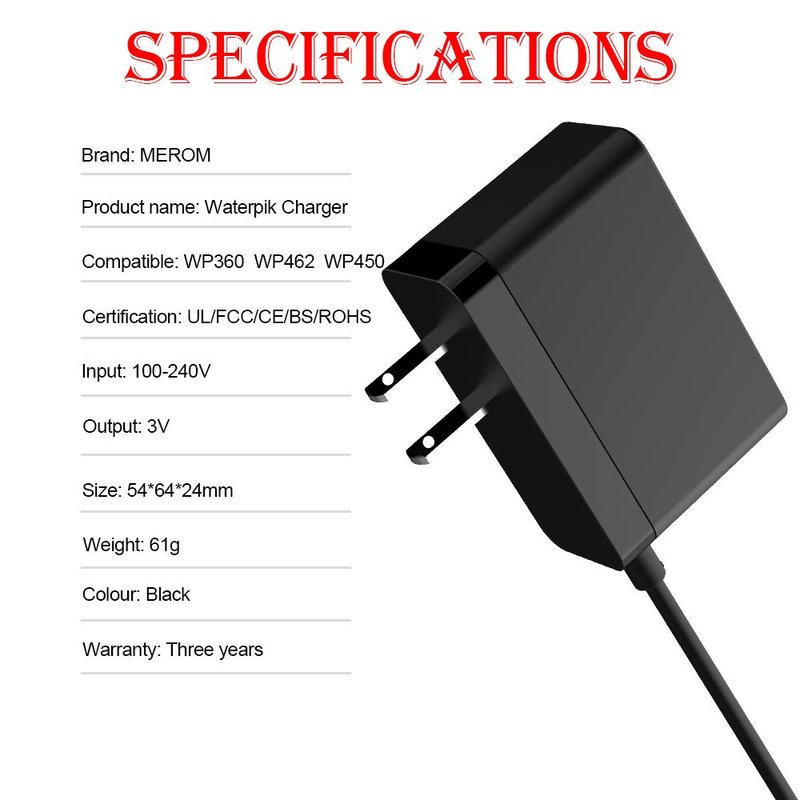 MEROM Charger Adapter YLA-03010 for Waterpik WP360 WP360W WP462 WP462W WP450 WP450W Water Pik Power Cord Supply