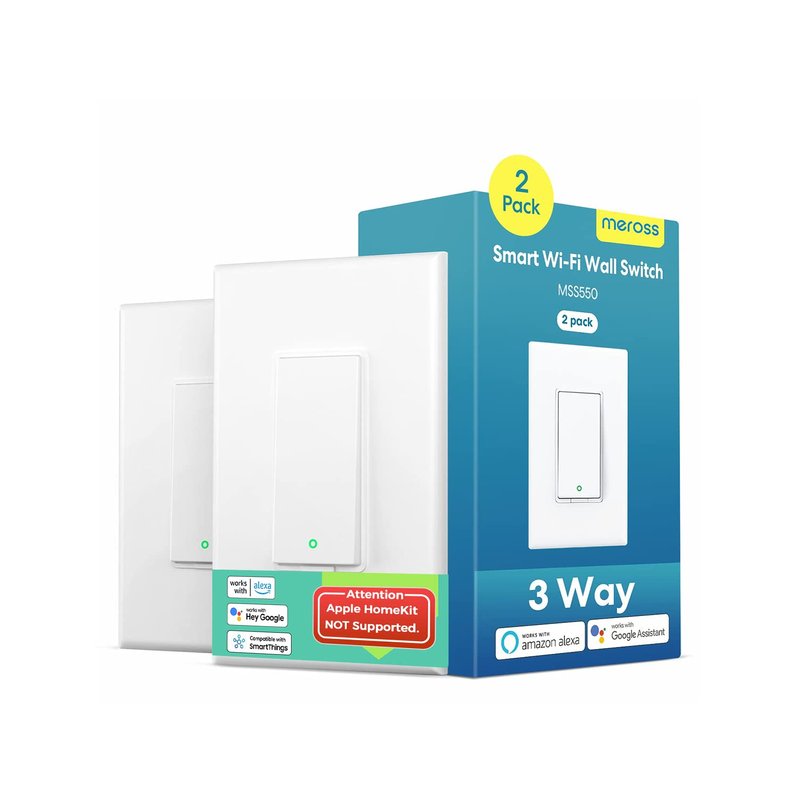 meross 3 Way Smart Light Switch (Neutral Wire Required), 2.4G WiFi Light Switch Supports Alexa, Google Assistant and SmartThings, Voice Control and Schedule (2 Pack)