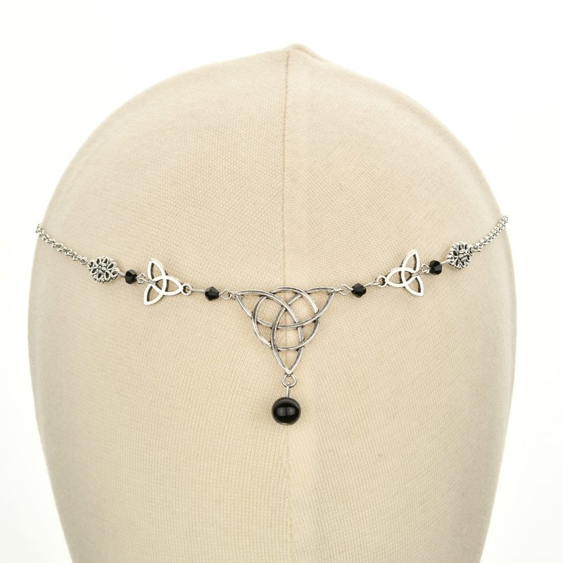 Merroyal Women Girls Gothic Head Chain Crystal Pendant Headpieces Gypsy Boho Celtic Knot Hairband Halloween Hair Acessories (Silver and Black)