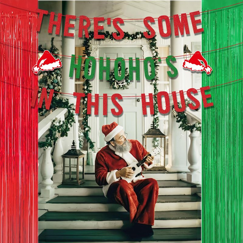 - Package Includes:You will receive 3 pre-strung vintage Merry Christmas signs: 1 glitter red "There's Some" banner, 1 glitter green "Ho Ho Hos" garland, and 1 glitter red "In This House" banner (each string is 2.5 meters with adjustable lettering spacing). Additionally, there is 1 red foil curtain and 1 green foil curtain party streamer. The funny banners and xmas decorations present beautiful colors that make your Christmas party even more joyful.