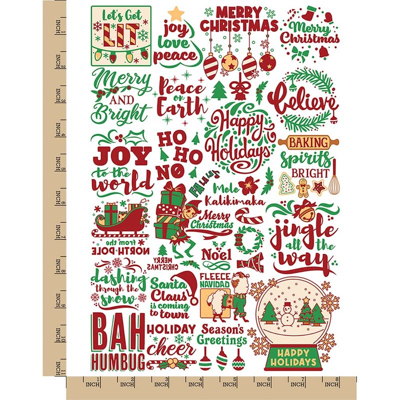 Merry Christmas Holiday Sayings Greetings Temporary Tattoo Water Resistant Fake Body Art Set Collection - Color (One Sheet)