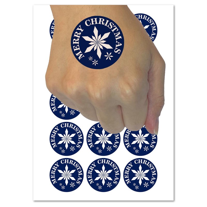Merry Christmas Holiday Snowflake Temporary Tattoo Water Resistant Fake Body Art Set Collection - 15 2" Tattoos (1 Sheet)