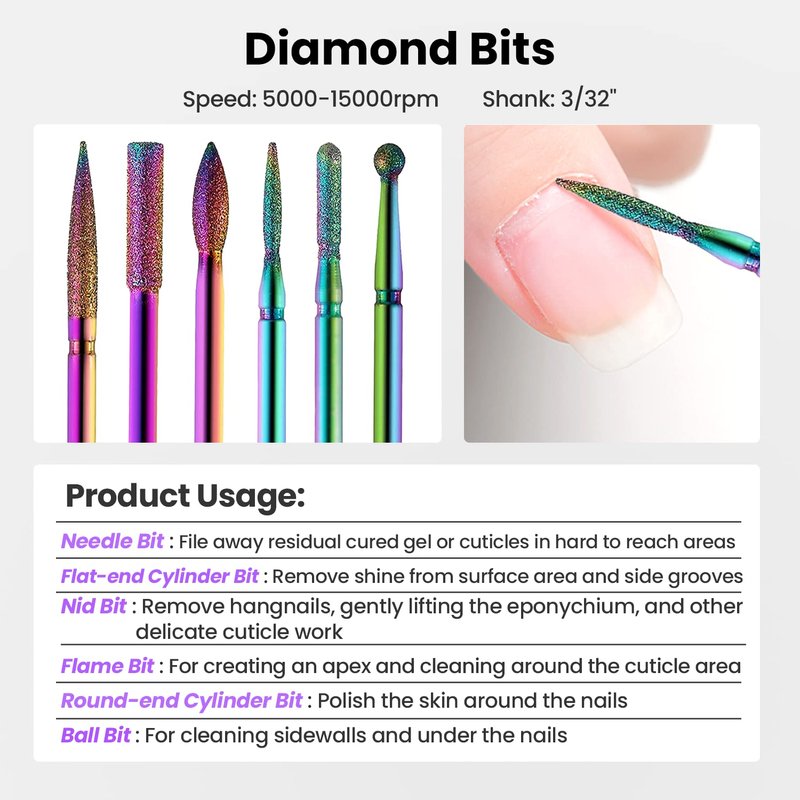 - 【Washable and Long-lasting】Washable and long-lasting carbide and diamond nail drill bits that resist corrosion and rust.