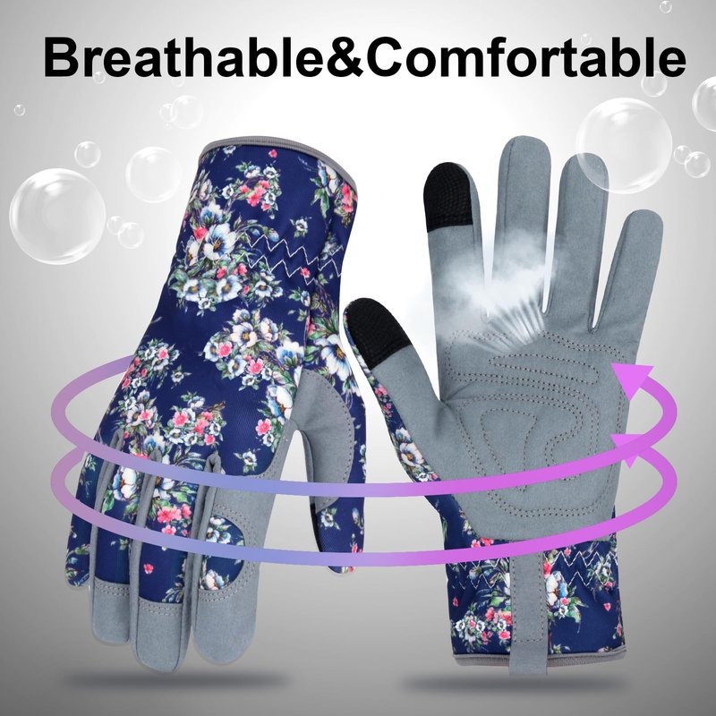 - TOUCH SCREEN DESIGN GARDENING GLOVES - The work gloves women with special touch screen design, which more humanization and ergonomic. Can answer the phone anytime without put off your yard gloves while garden working.