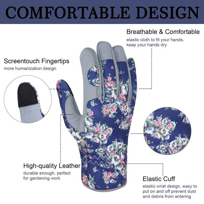 - FLEXIBLE AND PRETTY - The womens gardening gloves show great grip performance, microfiber gloves for plants can hold garden tools easily. Pretty patterns printed on leather gardening gloves women, suit for ladies women who like garden work. Great heavy duty gardening gloves.