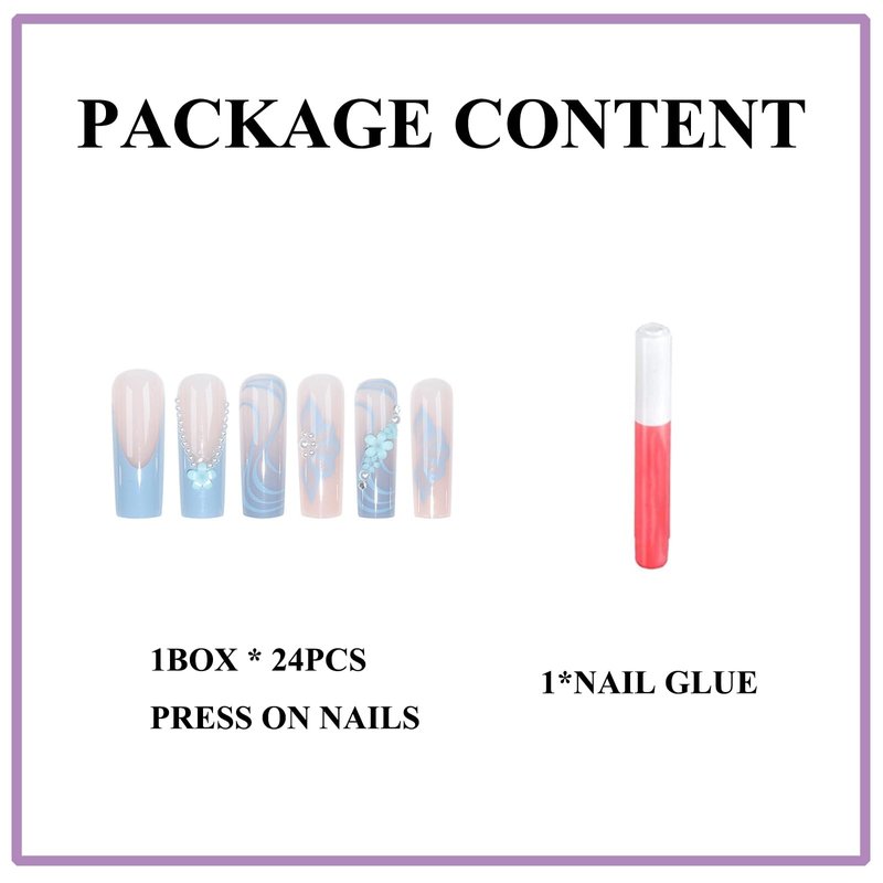- Easy to Use--- Blue french press on nails just choose a right size of the nail, polish the nail bed, apply tabs on nails and press it for about 15 seconds. You can get a new nail by yourself without wasting time and more money at the nail salon