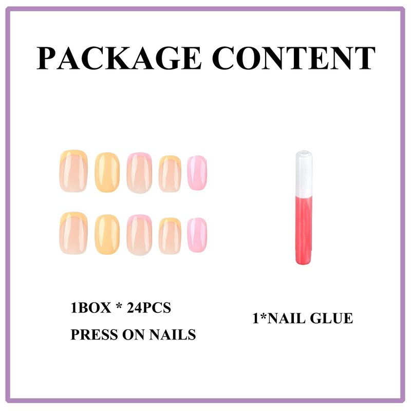 MERVF Square Press on Nails Short Fake Nails French Tip Squoval Glue on Nails Press ons Orange Acrylic Nails Artificial Pink 24pcs Glossy False Nails with Design