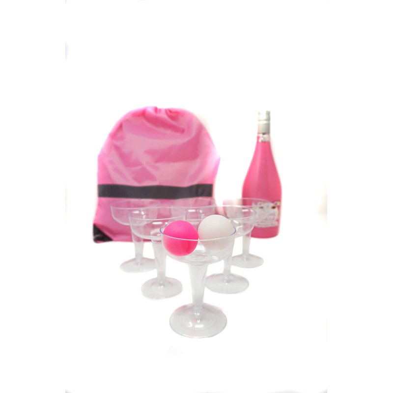 Merz67 Pong-Secco Ping-Pong Drinking Game 12 Champagne Glasses, 2 Balls and Drawstring Backpack, Pink