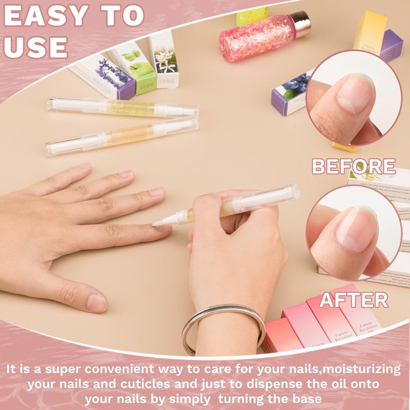 - 【Pen Shape Appearance Design】 - Is convenient to carry and use,Make the application of cuticle oil onto your nails very easy without any mess.Different from oil in bottle,Our cuticle oil pen allows accurate and efficient application of the oil to the base of your nails without any waste.