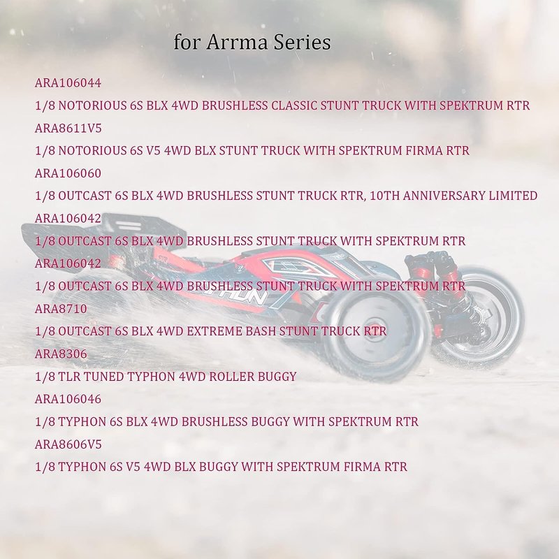 - COMPATIBLE WITH📀,fit for ARRMA 1/8 NOTORIOUS 6S BLX,1/8 OUTCAST 6S BLX,1/8 TLR TUNED TYPHON,1/8 TYPHON 6S BLX