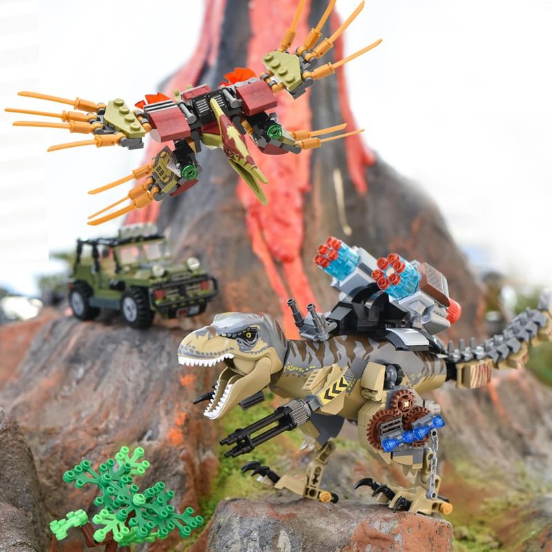 - There are 725 pieces components in the mechanical dinosaur attack toy set.The construction time is about 4 hours. Kid can play at home alone or with friends.