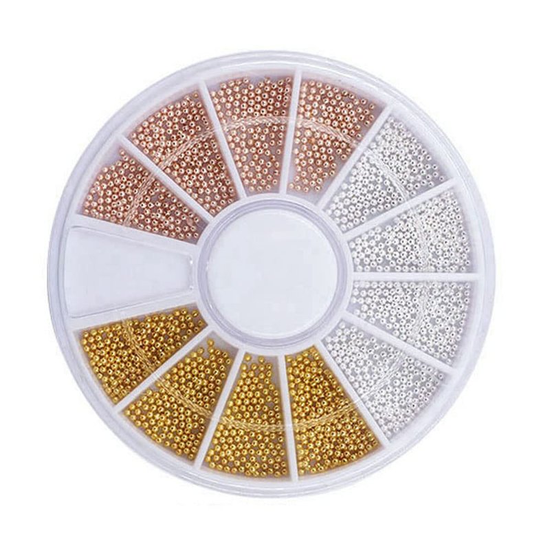 Mesiyun Nail Art 3D Caviar Beads Mini Metal Ball Gold and Silver Micro Steel Beads Decoration Accessories (2 Wheel Caviar Beads+2 Metal beads)