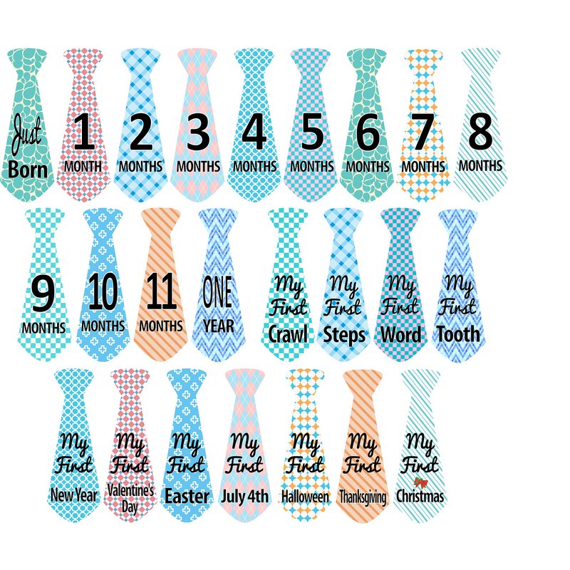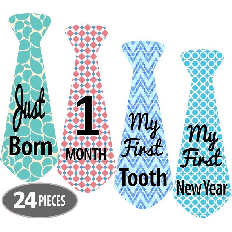 Mesmerico 24 Baby Monthly Holiday Tie Necktie Stickers - Baby Boy First Year Month Age Growth Milestones - Month Stickers for Baby Onesie Belly Stickers - Great Shower Registry Newborn Gifts