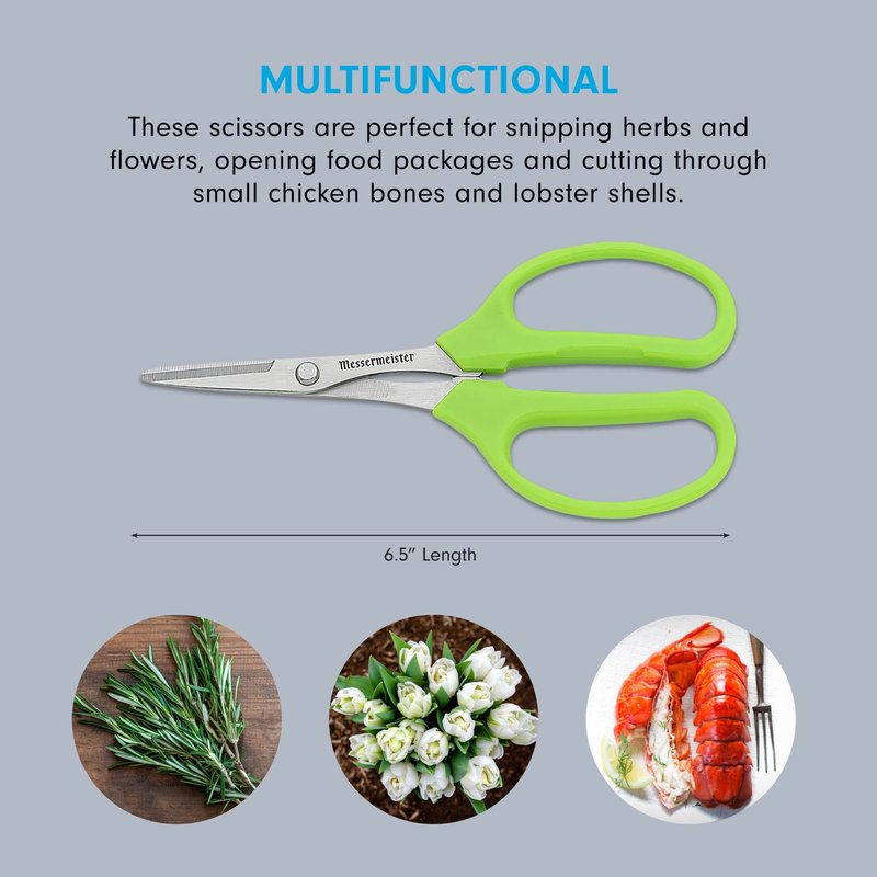 - CUT WITH A PURPOSE - These culinary scissors are perfect for snipping herbs and flowers, opening food packages & cutting through small chicken bones & lobster shells. They are great for using around the kitchen, in the garden & for arts and crafts.