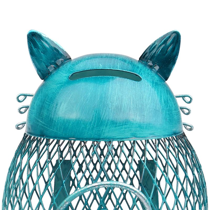 - [Quality Material] Sturdy and durable handmade metal sculpture with delicate workmanship and cat shaped reticulated hollowed out money bank that can be seen through. The surface is painted with environmentally friendly, non-polluting paint, which maintains a smooth surface permanently. The cat change jar is very well packaged.