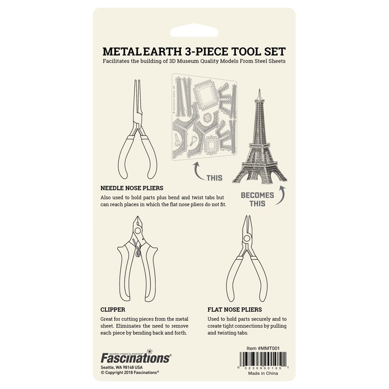 Metal Earth 3-Piece Tool Set - Clipper - Flat Nose Pliers - Needle Nose Pliers Bundle with Tweezers Fascinations