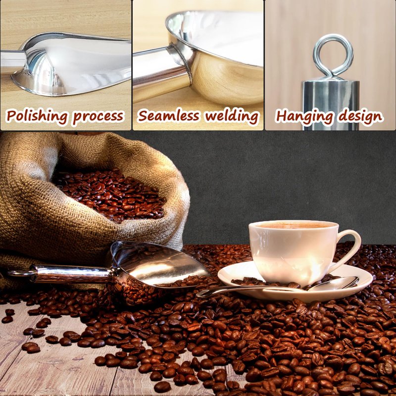 - 【Design Feature】: the edges of scooper won't hurt your hands,the handle is solid for a better grip,and the hook on top allows for hanging storage.