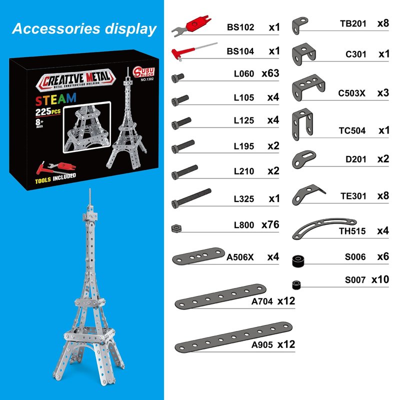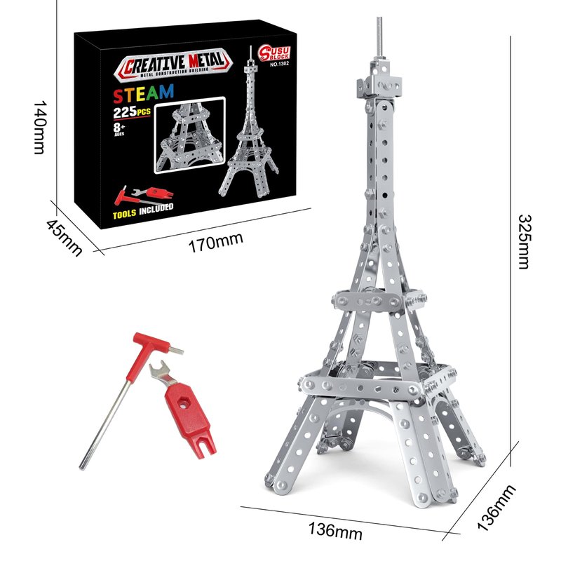 - 【Metal Architecture Model Kits】Building Eiffel Tower Model set includes 255 parts and pieces, such as nuts, bolts, small screwdriver, and wrench, etc., Made of metal ,Each piece is made of anti rust metal which is more durable and sturdy than other plastic assemblies